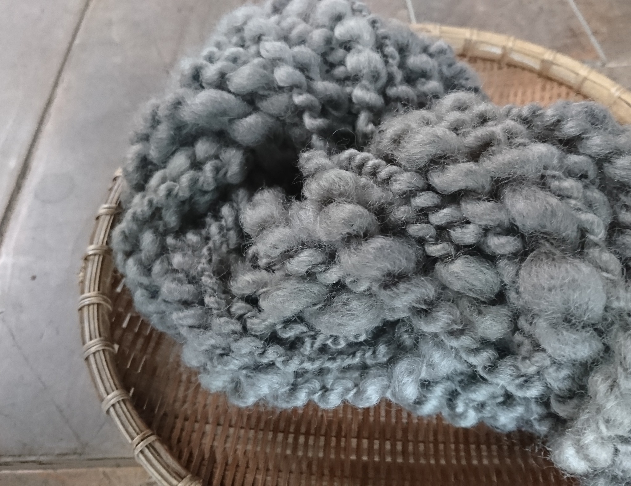 珈琲染め紡ぎ毛糸を使用いたしました。